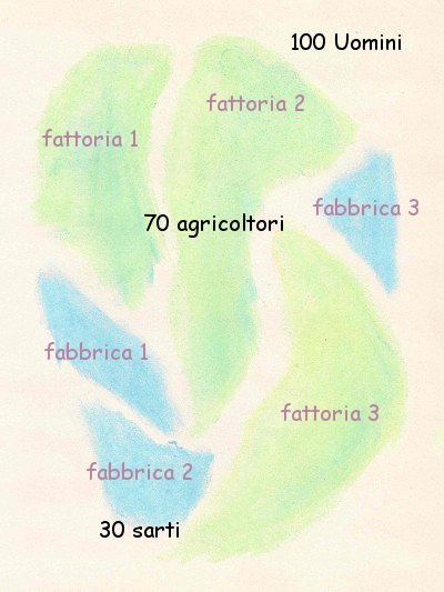 Adesso, però, vi faccio una domanda: il fatto che queste cento persone siano divise nei due settori è frutto di una libera scelta? Posso decidere liberamente quanti di questi cento debbano essere impiegati da una parte e quanti dall’altra? Potrei forse dire, ad esempio, cinquanta sono contadini e cinquanta sono sarti? Oppure dieci contadini e novanta sarti? Oppure ancora posso fare che solo uno sia contadino e gli altri novantanove sarti? No, avete pienamente ragione, non è così che funziona. Grano e prodotti tessili richiedono un diverso dispendio di energie. E a seconda dell’entità del lavoro, il risultato in termini di ore lavorate per un settore e per l’altro è molto diverso. Ne consegue poi anche la necessità di mano d’opera da impiegare. Attenzione a non farvi trarre in inganno dal pensiero del lavoro svolto dalle macchine. Perché è ovvio che parliamo del lavoro svolto dall’uomo senza il loro aiuto. In relazione all’ambito sociale parliamo di quello che l’uomo fa. Solo questo è da intendersi “lavoro” in senso economico. L’altro è da intendersi come lavoro fisico e ai fini della questione sociale che stiamo trattando non va preso in considerazione. E anche ai fini della questione economica non cambia nulla pensare che i contadini lavorino ancora con i cavalli o che usino il trattore. Infatti ammesso che le condizioni tecniche siano di un certo tipo a seconda del momento, quello che ne deriva è un certo numero di ore di lavoro che devono essere le persone a realizzare, come ad esempio guidare il trattore. Ed è solo di questo che parlo, perché solo in tal caso riusciamo ad addentrarci nella vita economica. Per quanta tecnologia vi sia, è solo in un secondo momento che entra in gioco la vita economica. Ammettiamo infatti una certa produttività per persona in base a condizioni tecniche stabilite, quello che resta per ciascun settore è un certo dispendio di lavoro svolto dall’uomo. Questo lavoro serve per preparare la merce nelle quantità che saranno effettivamente impiegate. In riferimento ai cento abitanti della nostra piccola realtà economica è necessario suddividere con precisione i lavoratori nei due settori per ottenere un giusto rapporto delle merci in termini quantitativi in base ai consumi effettivi. Il rapporto deve cambiare in funzione dei bisogni. Può darsi che il rapporto giusto sia settanta contadini e trenta sarti, oppure potrebbe essere meglio ottanta contadini e solo venti sarti. Naturalmente non posso saperlo prima che la cosa sia definita sul piano dei bisogni reali delle persone. Qui potete vedere che la questione sulla scelta della professione non è trattata dal punto di vista abituale. Oggi diciamo: mi piace l’idea di essere insegnante, quindi faccio l’insegnante. Non è la mia inclinazione personale a definire il “lavoro” in senso economico, ma i bisogni del prossimo. Il lavoro è stabilito semplicemente dall’organismo naturale. Non è un essere malvagio a farci lavorare, ma la natura dell’essere umano. Si tratta di un lavoro ben concreto e di una precisa entità. Nel nostro disegno abbiamo considerato bisogni necessari per la sopravvivenza, pensando a una divisione fra settanta contadini e trenta lavoratori dell’industria tessile. Facciamo che non possa esservi alcuna libertà per far vivere tutti, ma che siano assolutamente necessari settanta contadini e trenta sarti. E ammettiamo che lavorino. Provate a osservarli con calma e vi accorgerete subito di qualcos’altro. Potete vedere che nessuno qui lavora per sé stesso. Proprio come l’insegnante non insegna solo ai propri alunni, i contadini non consumano il grano da soli. No; il prodotto del lavoro dei contadini alimenta tutte le persone e lo stesso avviene anche per i prodotti dell’industria tessile. In altre parole, per esistere ognuno dei cento abitanti sfrutta una parte della produzione totale derivante dal lavoro. Ciò che riceve il singolo proviene dalla collettività. All’inverso la produzione totale si realizza solo quando il singolo riesce a collocarsi in un punto dove gli è possibile contribuire alla produzione totale. Per essere compresa, la questione del reddito deve essere in un certo senso capovolta. Su questo tornerò fra poco. Adesso dobbiamo mettere in movimento questa immagine. È ancora troppo rigida per rappresentare a tutti gli effetti il fluttuare del processo economico. Pertanto vi invito a immaginare come si svolge il lavoro. Le cose vanno lisce per qualche anno. Poi però avviene un cambiamento nella natura. L’uomo non può fare nulla nell’immediato per fare in modo che la natura segua le proprie leggi. Quando lo dico alle persone delle grandi città, c’è sempre qualcuno che non ci crede. Non credono al fatto che la natura cambi semplicemente perché hanno sempre comprato il pane al supermercato. Ma è questo che succede. Il pane è da un lato frutto del lavoro dell’uomo e dall’altro frutto della natura. E anche questo aspetto naturale muta di continuo. Il risultato del lavoro umano, quando questo è costante, varia di anno in anno. Prendiamo un caso estremo: ammettiamo che si verifichi un’erosione del terreno. Il terreno si impoverisce. Un grosso problema che negli anni passati ha toccato la Cina. Oppure ammettiamo che vi sia un periodo di siccità, come qualche anno fa è successo in Russia. Non c’è niente da fare; dopo un anno la produzione di grano è inferiore. Con lo stesso numero di persone il grano prodotto è sempre meno. Questo è un punto che dovete tenere a mente: con la stessa quantità di manodopera la produzione di grano è stata inferiore. Cosa ne consegue? Allora consideriamo per prima cosa il produttore tessile. Per il quale non è cambiato nulla. La sua potenzialità di offerta è sempre la stressa. Ma quello che gli serve per la produzione, non lo riceve più. Non c’è più. Al suo rendimento si contrappone quello dell’altro in quantità inferiore. E cosa succede al contadino? Il cont